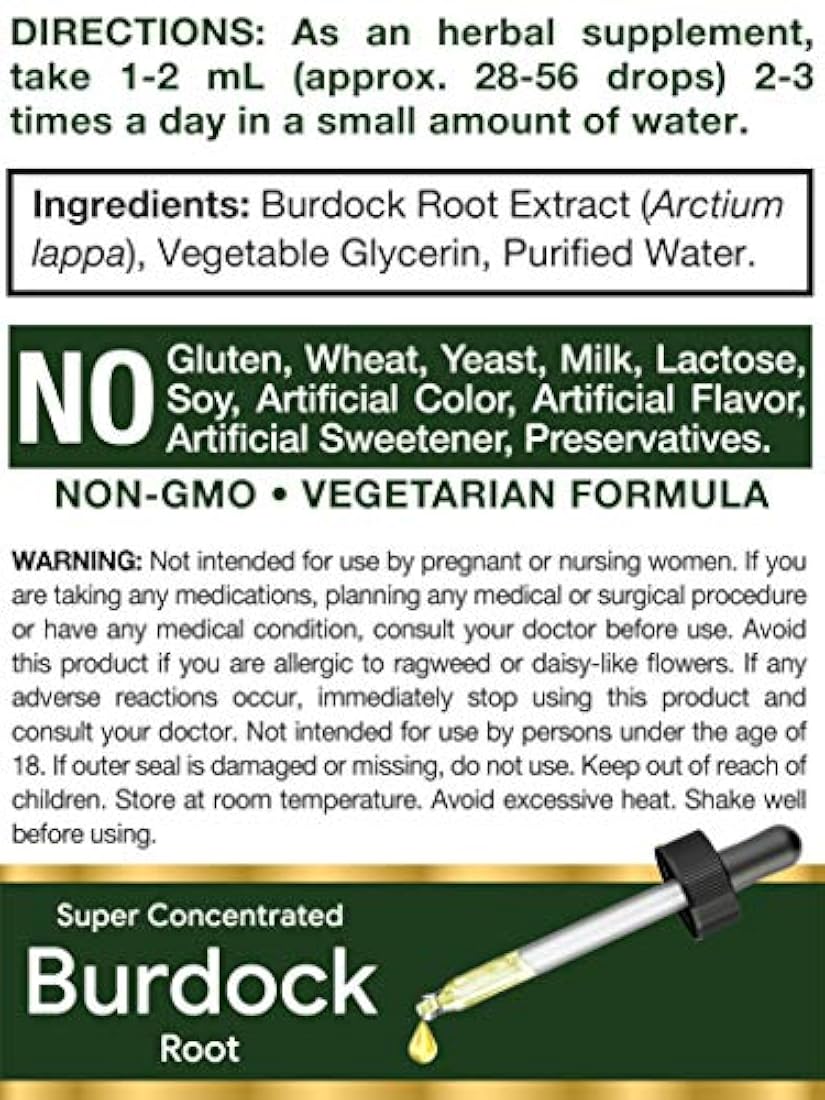 *** Características *** Desintoxicación diaria: la raíz de bardana contiene puestos beneficiosos para apoyar el bienestar y la desintoxicación * Extracto de potencia: el extracto líquido libre de alcohol de Horbaach está súper concentrado para un máximo apoyo. Respetuoso con el medio ambiente: nuestro suplemento de hierbas está hecho a mano con ingredientes vegetarianos. Fabricantes Horbaach: probado en laboratorio, ingredientes de confianza, calidad superior, 100% garantizado. Sin gluten, trigo, levadura, leche, lactosa, soja, color y sabor artificiales y sin OMG Desintoxicación diaria: la raíz de bardana contiene puestos beneficiosos para apoyar el bienestar y la desintoxicación * Extracto de potencia: el extracto líquido libre de alcohol de Horbaach está súper concentrado para un máximo apoyo. Respetuoso con el medio ambiente: nuestro suplemento de hierbas está hecho a mano con ingredientes vegetarianos. Fabricantes Horbaach: probado en laboratorio, ingredientes de confianza, calidad superior, 100% garantizado. Sin gluten, trigo, levadura, leche, lactosa, soja, color y sabor artificiales y sin OMG