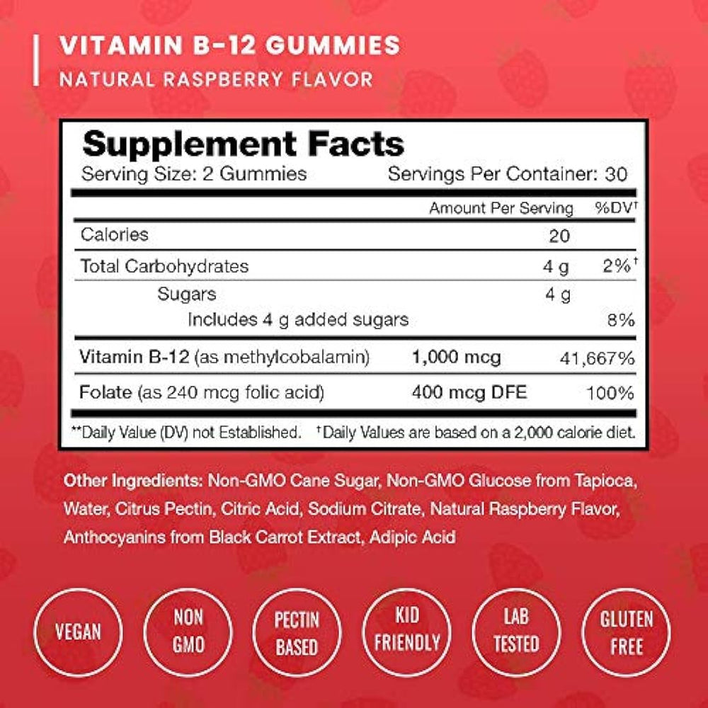 *** Características *** ? B12 reforzado con espuma (VITAMINA B9) - NutraChamps B12 gomas veganas utilizan la forma activa de vitamina B12 (metilcobalamina) para que tu cuerpo pueda utilizar sus beneficios de inmediato. Y con el folato añadido, obtendrás otra vitamina B que produce energía en cada gomita. ? Energía suave - B12 puede ayudar a proporcionar un flujo suave de energía y enfoque para tomar en el día. Pero no todas las formas de B12 se crean iguales ... es por eso que solo usamos metilcobalamina B12; Es la forma más fácil para que el cuerpo digerir, absorba y utilizar, lo que significa más explosión para su buck (así como cuerpo y cerebro). ? ¡Gomitas deliciosas! - Grandes beneficios con un gran sabor. Con un sabroso sabor a bayas naturales, estas gomas masticables son perfectas para niños, mujeres y hombres. Ya sea que estés comprando para la familia o para ti, las gomas B 12 son deliciosas, prácticas, fáciles y eficaces tanto para niños como para adultos. ? Vegano y a base de plantas: las gomas NutraChamps B12 (basadas en plantas) son perfectas para cualquier persona que busque una manera limpia y verde de obtener vitamina B-12 en su dieta. Con cero gelatina, productos animales, gluten, soja, huevos, lácteos o nueces, puedes sentirte seguro en la calidad y pureza de lo que estás poniendo en tu cuerpo. No son OMG, paleo y celíacos también. ? Fabricación de la más alta calidad: todos los suplementos de NutraChamps se fabrican en instalaciones de última generación, y han sido probados en laboratorio para garantizar que recibas los productos más puros, seguros y de la más alta calidad del mercado. ? B12 reforzado con espuma (VITAMINA B9) - NutraChamps B12 gomas veganas utilizan la forma activa de vitamina B12 (metilcobalamina) para que tu cuerpo pueda utilizar sus beneficios de inmediato. Y con el folato añadido, obtendrás otra vitamina B que produce energía en cada gomita. ? Energía suave - B12 puede ayudar a proporcionar un flujo suave de energía y enfoque para tomar en el día. Pero no todas las formas de B12 se crean iguales ... es por eso que solo usamos metilcobalamina B12; Es la forma más fácil para que el cuerpo digerir, absorba y utilizar, lo que significa más explosión para su buck (así como cuerpo y cerebro). ? ¡Gomitas deliciosas! - Grandes beneficios con un gran sabor. Con un sabroso sabor a bayas naturales, estas gomas masticables son perfectas para niños, mujeres y hombres. Ya sea que estés comprando para la familia o para ti, las gomas B 12 son deliciosas, prácticas, fáciles y eficaces tanto para niños como para adultos. ? Vegano y a base de plantas: las gomas NutraChamps B12 (basadas en plantas) son perfectas para cualquier persona que busque una manera limpia y verde de obtener vitamina B-12 en su dieta. Con cero gelatina, productos animales, gluten, soja, huevos, lácteos o nueces, puedes sentirte seguro en la calidad y pureza de lo que estás poniendo en tu cuerpo. No son OMG, paleo y celíacos también. ? Fabricación de la más alta calidad: todos los suplementos de NutraChamps se fabrican en instalaciones de última generación, y han sido probados en laboratorio para garantizar que recibas los productos más puros, seguros y de la más alta calidad del mercado.