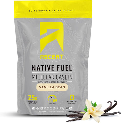 Ascent Proteína Caseína - 25g, Sin Azúcar, Sin Aditivos, Vanilla