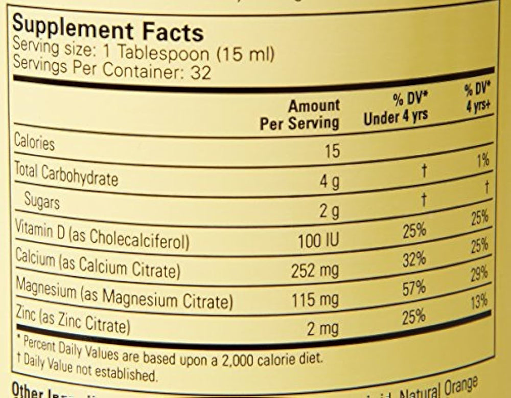 Calcio / Magnesio líquido sabor natural a naranja de 16 fl