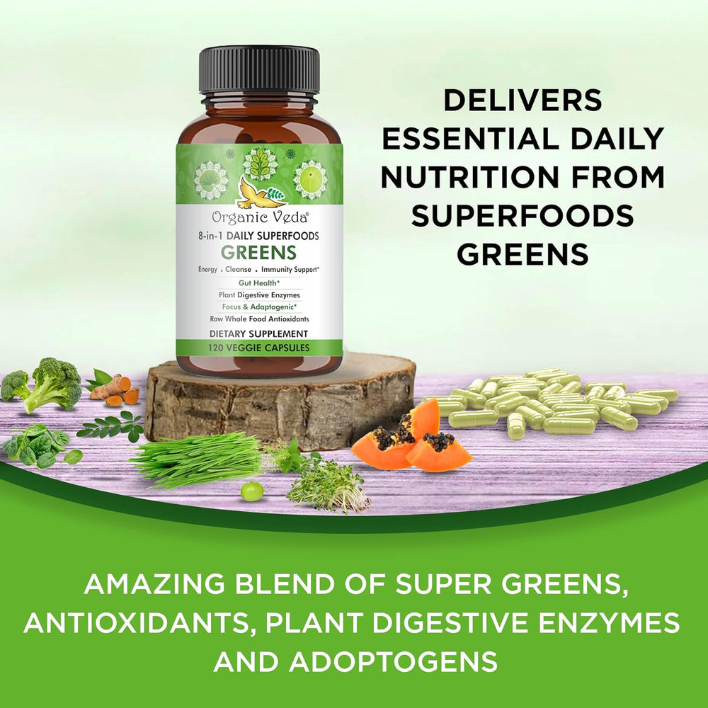 Cápsulas de Supergreens con 8 Verduras y Enzimas Digestivas