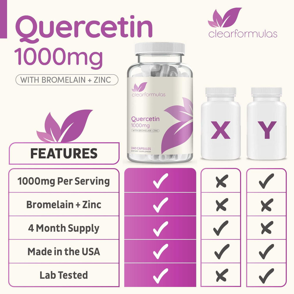 Quercetina 1000mg con Bromelina y Zinc, 240 Cápsulas
