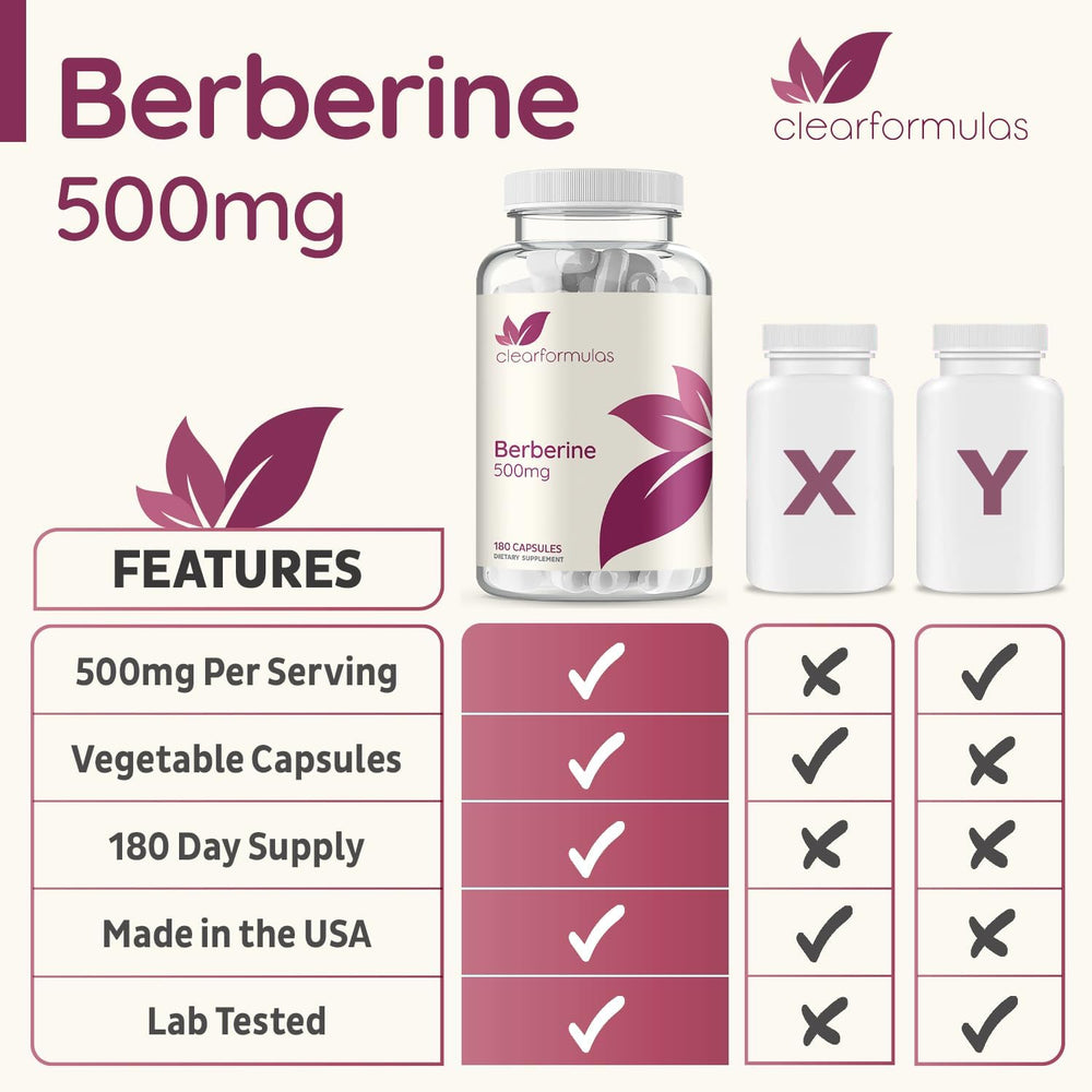 Suplemento de Berberina 500mg - 180 Cápsulas Vegetales