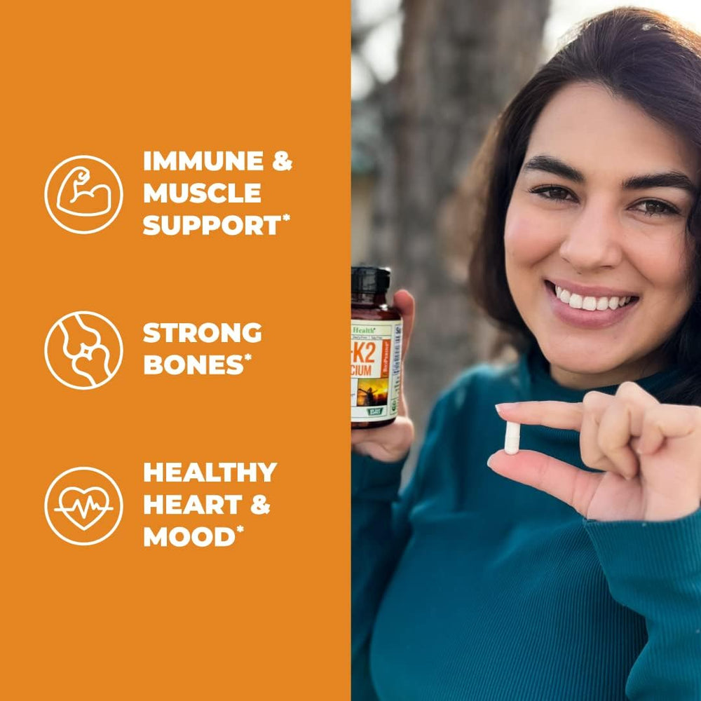 Suplemento de Vitamina D3, K2 y Calcio con BioPerine 60 cáp
