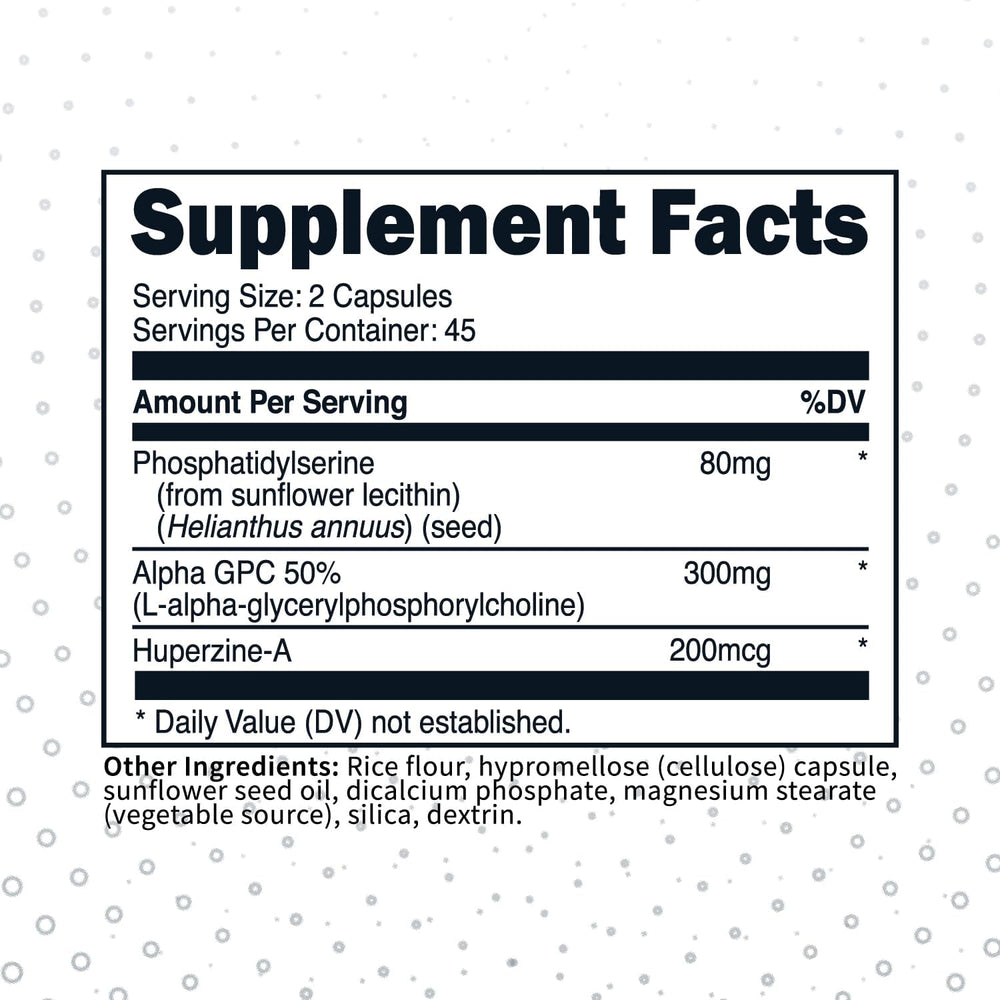Suplemento Nootrópico 3X Fuerza con Alpha GPC y Huperzina A