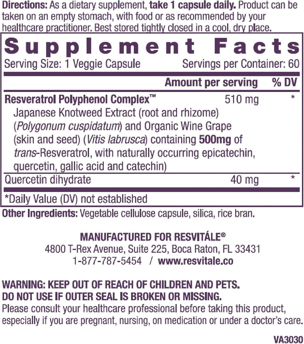 Suplemento ResVitále Resveratrol 500 mg 60 cápsula vegetal