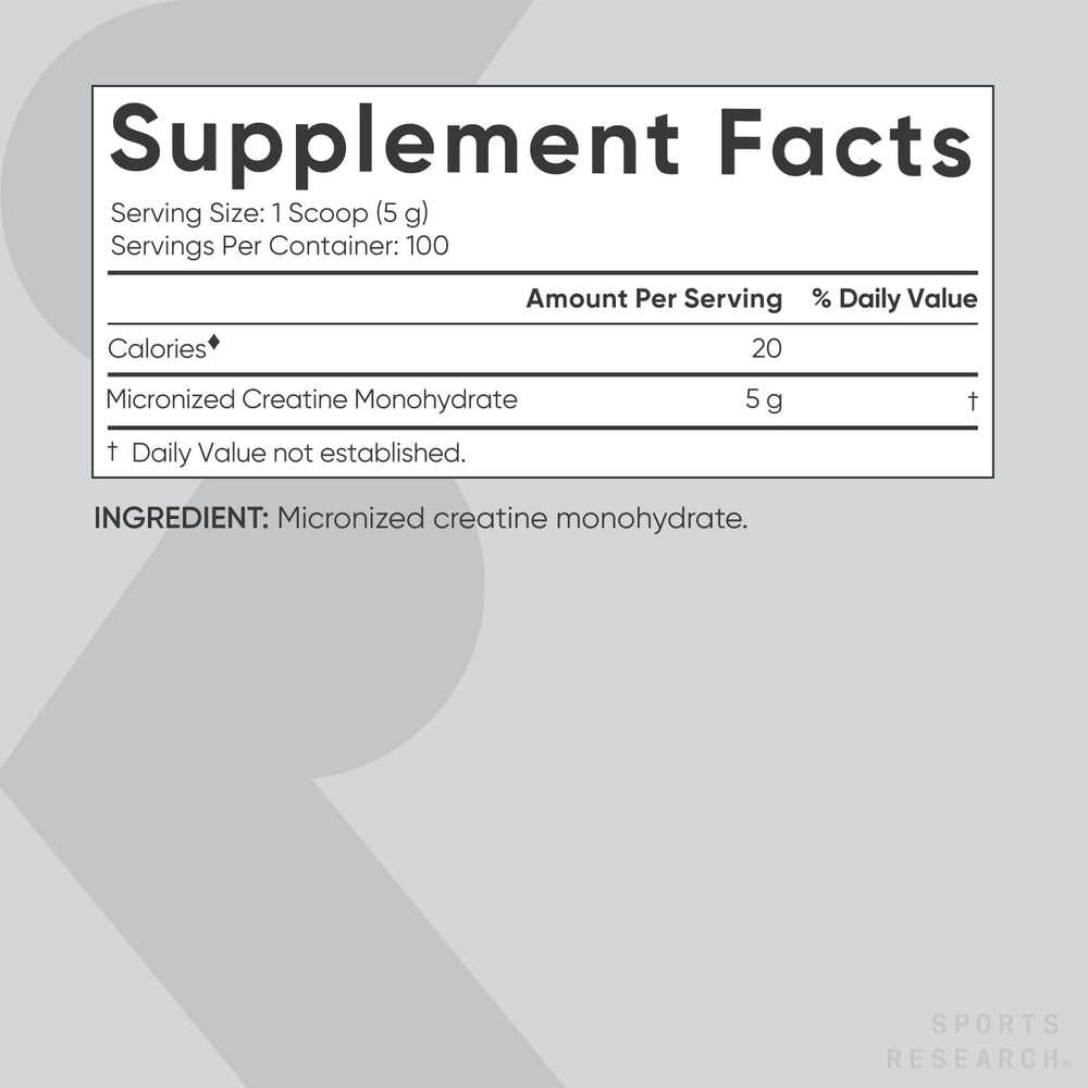Suplemento Sports Research Monohidrato de creatina 1.1 lb