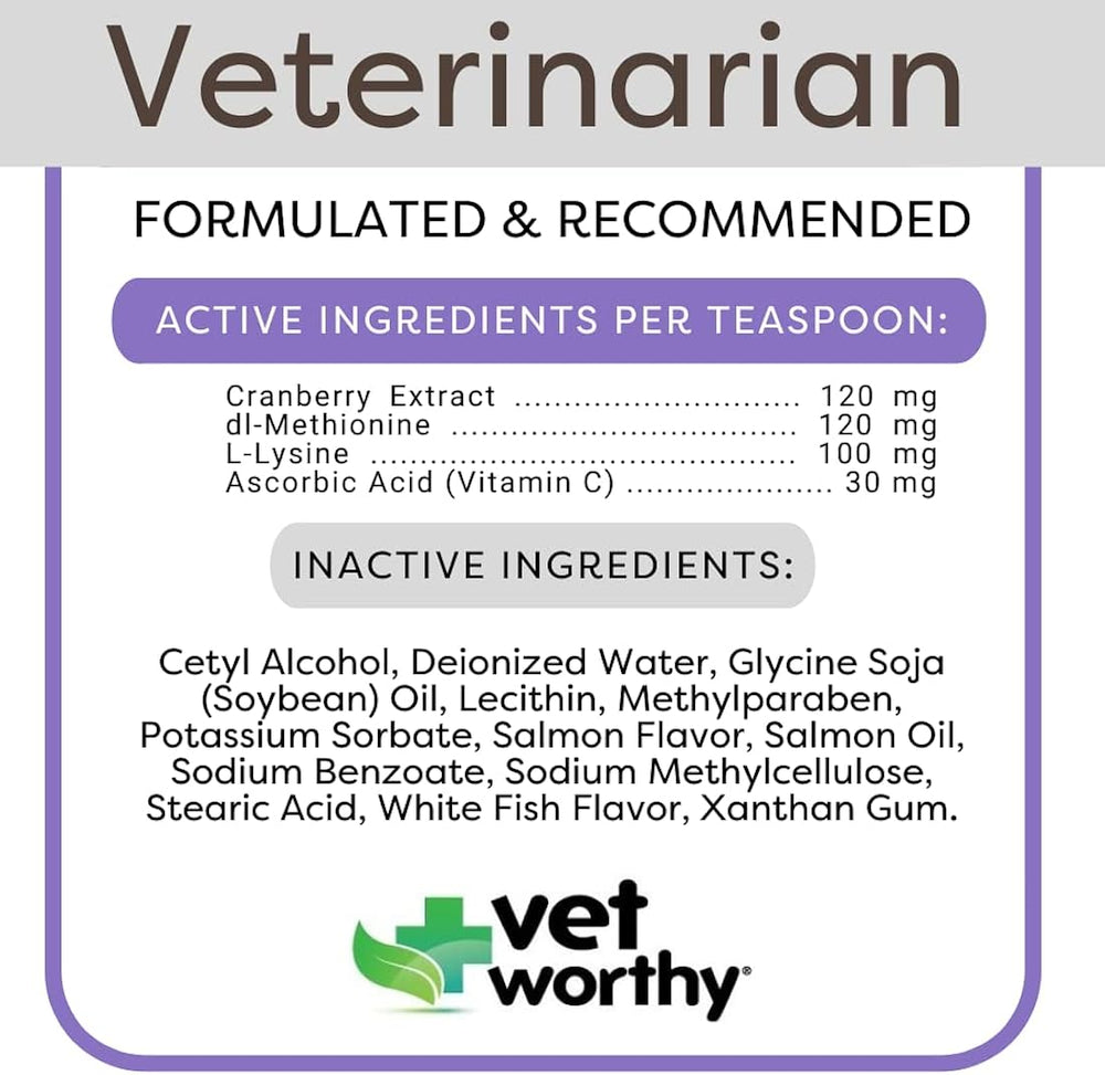 urinario para gatos: este suplemento de arándano contiene ingredientes para apoyar la salud y el control normales de la vej y mantener la función saludable del sistema del tracto urinario Potentes ingredientes activos: este suplemento de vejiga para gatos contiene glucosam extracto de arándano y D-manosa para promover el control normal de la vejiga y la salud urinaria. Apoya el pH normal de la orina. Formulado por veterinarios: este suplemento urinario para gatos está formulado con ingredientes aptos para mascotas y hecho sin productos químicos agresivos para mantener a tus gatos seguros y saludables Fácil de dar: este suplemento nutricional para gatos viene en un delicioso sabor a pollo que a tus gatos les encantará. El masticable suave es fácil de masticar y delicioso. Empaquetado en un tarro resellable para una frescura continua. Adecuado para todos los gatos y edades Calidad fabricada: Vet Worthy es una empresa estadounidense que ofrece una amplia variedad de productos que se fabrican con orgullo bajo un estricto control de calidad para proporcionar beneficios saludables para amigos peludos. Porque una mascota saludable es una mascota feliz