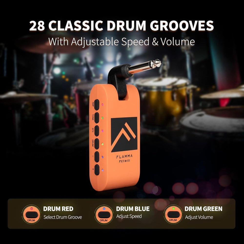 Acerca de este artí 7 modelos de amplificadores diferentes con función de guardado individual para cada uno. 28 opciones diferentes de ritmo de batería para elegir. 7 efectos incorporados con ajuste de parámetros. 5 niveles de color TONO. Compatible con Bluetooth para reproducción de audio. Admite grabación de AUDIO USB y reproducción de audio. ? Ver más detalles del producto Información del producto: - Peso del artí : 4.4 onzas - Dimensiones del producto: 3,2 x 1,6 x 1,2 pulgadas - : C5CYHSC6 - Número de modelo del artí : FX11 - Baterías: 1 batería de polímero de litio requerida (incluida) - Opiniones d s: 3.8 de 5 estrellas en 55 valoraciones - Fecha de lanzamiento: 31 de mayo de 2023 - Dispositivos atibles: bajo eléctrico - Tipo de conector: USB - Tipo de material: Plástico - Potencia de salida: 5 vatios - Tipo de batería: Polímero de litio - Fuente de alimentación: Batería recargable del producto: Para obtener información sobre l de este prod . ¡Descubre el amplificador de auriculares FLAMMA Bass! Este amplificador portátil para auriculares cuenta con 28 ritmos de bate 7 modelos de amplificado efectos integra 5 colores de Blueto grabación y reproducción de audi función OTG y batería recargable. Perfecto para músicos y amantes de la música.