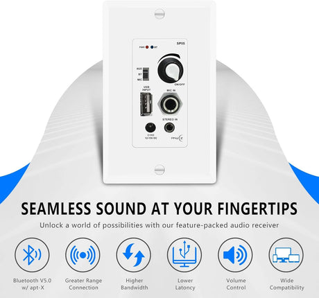 Amplificador de Audio In Wall 120W con Bluetooth y USB
