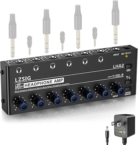 Amplificador de auriculares estéreo 6 canales con potenciador de graves