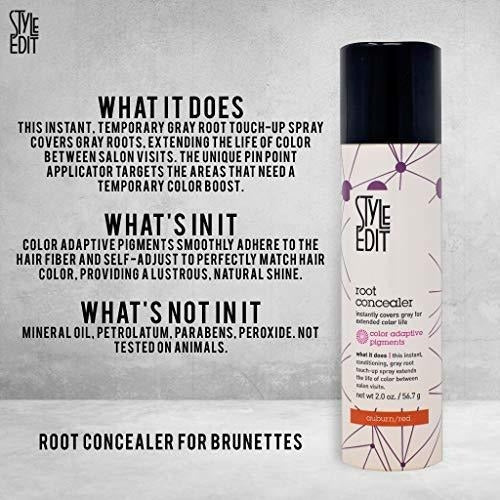 *** Características *** EXCELENTE PARA ENTRE VISITAS DE SALÓN DE BELLEZA: este ocultamiento de calidad de salón es ideal para hombres y mujeres para usar en casa. Es un spray para el cabello no permanente, pero dura días y se quita fácilmente con champú. RAÍCES INMACULADAS SIN ESFUERZO: deje de perder tiempo y dinero en los centros de salón, obtenga esta botella de spray para el color del cabello y cubra sus raíces grises al instante en 3 segundos en la comodidad de su hogar. SIN PEGAMENTOS O INGREDIENTES DUROS: el tinte para cabello marrón medio se seca rápido y nunca se descascara, corre o se frota en la ropa BUENO PARA TODOS LOS TIPOS Y TEXTURAS DE CABELLO: los pigmentos adaptables al color se adhieren suavemente a la fibra capilar y se autoajustan para obtener un resultado perfecto. Apto para todo tipo de cabello y colores. ORGULLOSAMENTE FABRICADO EN LOS ESTADOS UNIDOS: nuestro retoque de raíz sin crueldad se investiga, diseña y fabrica con orgullo en los EE. UU. Con ingredientes locales cuidadosamente seleccionados.