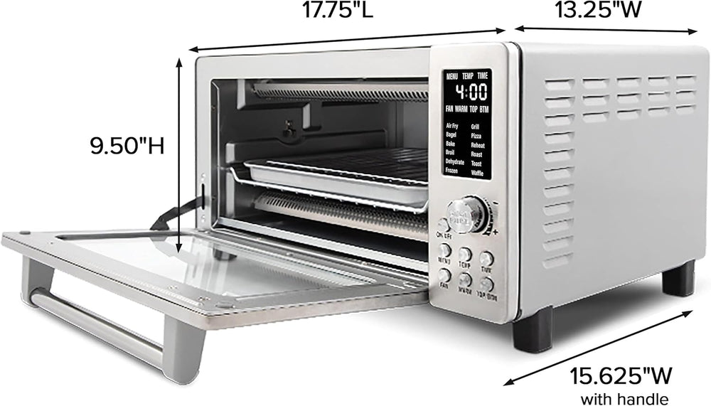 Nuwave Bravo - Horno tostador digital 12 en 1, horno de convección de encimera y freidora de aire, 1800 vatios, capacidad de 21 cuartos de galón, controles de temperatura de 50°-450°F, cocción envolvente de doble zona, tecnología T lineal, aspecto SS