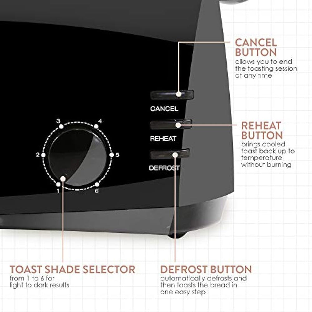 Tostadora larga de 4 rebanadas con 6 ajustes de tostada.