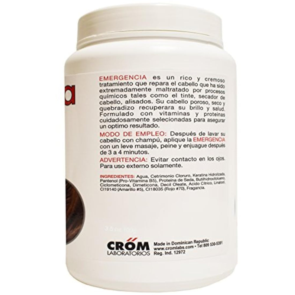 *** Características *** Triple acción / triple acciónRestaurar / restauraBrilla, brillaHidrata / hidrataDominicana Cuidado Del Cabello Producto Emergencia va a restaurar el brillo y la salud del cabello que ha sido extremadamente daado por procesos químicos o el pelo Coloreando o sabe. emergencia en y dejar durante 4minutos.Peine del pelo y proceder al aclarado.
