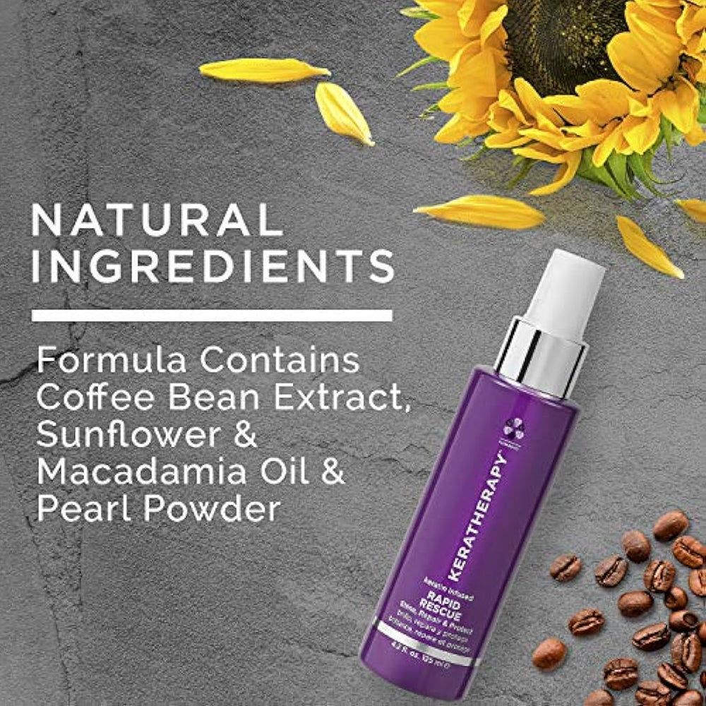 ¡Brille, repare y proteja su cabello con nuestro spray de rescate rápido infundido con queratina! Este spray brillante especialmente formulado hace que tu cabello brille al instante y le da un aspecto naturalmente saludable. Con solo unas pocas salpicaduras, tu cabello volverá a la vida, dándole brillo y volumen durante todo el día. Keratherapy Rapid Rescue contiene aceite de girasol con antioxidantes que nutren cada hebra, alisando y suavizando tu cabello; aceite de macadamia con lípidos naturales para reparar el cabello quebradizo y dañado; polvo de perlas, lleno de 18 aminoácidos y más de una docena de minerales para domar y suavizar las cerraduras; y extracto de café en grano, que le da a tu cabello un brillo y brillo brillantes. Este spray protector de calor de queratina funciona en cabello seco y húmedo. Se puede aplicar sobre el cabello húmedo antes de secarlo para hidratar los mechones, así como para secar el cabello para que sea más manejable todo el día o la noche. Simplemente rocíe Rapid Rescue sobre la mitad de la longitud y las puntas de su cabello antes de secarlo y peinarlo, o durante todo el día, para reponerlo y protegerlo, mientras obtiene un brillo magnífico. Este aerosol infundido con queratina se crea con nuestra tecnología patentada KERABOND, mediante la cual la queratina pura se refina y mejora, lo que le permite ir más allá de la cutícula y penetrar más profundamente en el tallo del cabello, donde se une a las partes más dañadas del cabello. KERABOND mejora significativamente la fuerza y ??la elasticidad del cabello, asegurando el más alto nivel de suavidad y reparación inmediatamente donde más se necesita.