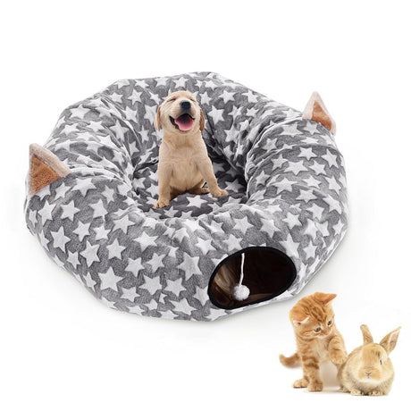 Cama de túnel para gatos con cojín de felpa lavable