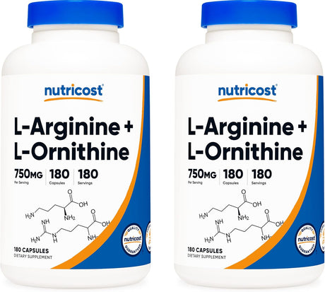 Nutricost L-Arginina y L-Ornitina 750mg 180 Cápsulas x2