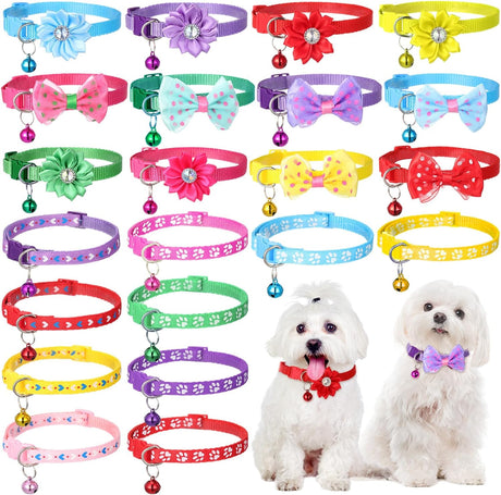 Collares Ajustables con Moño y Flor para Perros y Gatos Pequeños