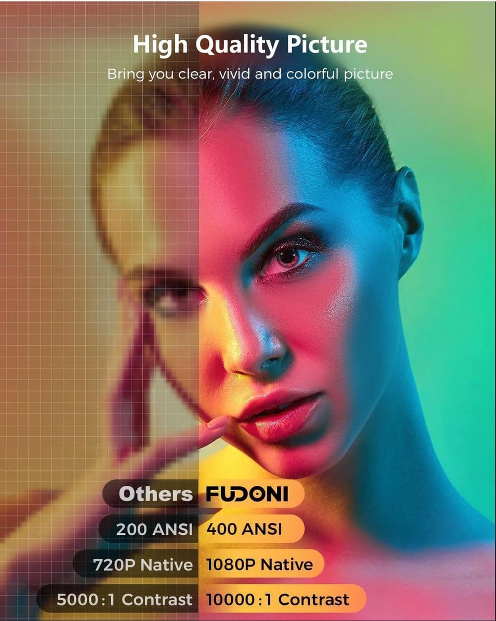 Proyector FUDONI 4K Portátil WiFi Bluetooth 18000L HD 1080P