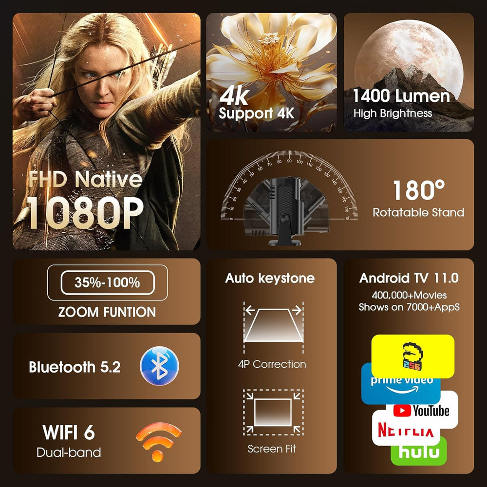 Proyector Mini 1920x1080P, WiFi, Bluetooth, Auto Keystone, 4K