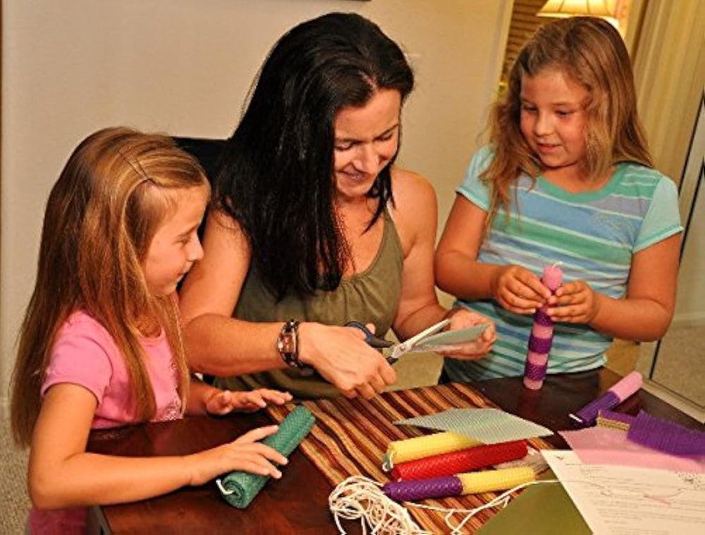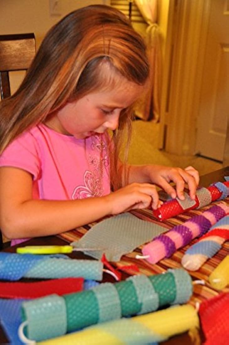 *** Características *** .El kit de velas de cera de abeja Make Your Own incluye 10 velas de tamaño pleto (aprox. 7.9 x 15.7 in, 100% hojas de abeja de cera de abeja.También se incluye aprox. 6 yardas (18 pies) de mecha de algodón. Cada hoja de cera de abeja puede hacer dos velas cónicas de 8.0 x 1.0 in. Instrucciones paso a paso incluidas, sin embargo, ejercita tu imaginación y crea algo único.El kit de velas de cera de abeja llegará en una hermosa caja y será un buen regalo de cumpleaños, Navidad o Hanukkah, o pruébalo por ti mismo. Es un gran juguete práctico o proyecto de manualidades para niñas, niños o adultos.Los niños pueden superar sus juguetes, pero nunca serán demasiado viejos para disfrutar haciendo sus propias velas de cera de abeja. Mucho diversión para todas las edades, especialmente o una actividad de fiesta de cumpleaños, actividad de día lluvioso o un evento de recaudación de fondos. Si te gustan las velas de cera de abeja, también disfrutarás haciéndolas.Los colores reales pueden variar de los mostrados debido a las variaciones en la configuración del monitor. Si tiene alguna pregunta sobre colores específicos, no dude en enviarle un correo electrónico. Con la excepción de marfil, las hojas de cera de abeja están coloreadas con tinte de grado alimenticio aprobado por la FDA. *** Descripción *** El kit de velas de cera de abeja incluye 10 velas de tamao pleto (aprox. Hojas de panal de abeja de 7.9 x 15.7in. Tambin se incluye aprox. 6 yardas (18 pies) de mecha de algodn. Cada hoja de cera de abeja puede hacer dos velas cnicas de 7.9 x 1.0in. Se incluyen instrucciones paso a paso, sin embargo, ejercita tu imaginacin y crea algo nico. El kit de velas de cera de abeja Make Your Own llegar en una hermosa caja y es un buen regalo de cumpleaos, Navidad o Hanukkah, o intntalo por ti mismo. El kit de velas de cera de abeja Make Your Own es un gran juguete prctico o proyecto de manualidades para nias, nios o adultos. Mucha diversin para todas las edades, especialmente o una actividad de fiesta de cumpleaos, actividad de da lluvioso o un evento de recaudacin de fondos. Si te gustan las velas de cera de abeja, tambin disfrutars hacindolas. Los colores reales pueden variar de los colores mostrados debido a las variaciones en la configuracin del monitor. Si tienes alguna pregunta sobre colores especficos, no dudes en enviarte un correo electrnico. Con la excepcin de marfil, las hojas de cera de abeja estn coloreadas con tinte de grado alimenticio aprobado por la FDA.