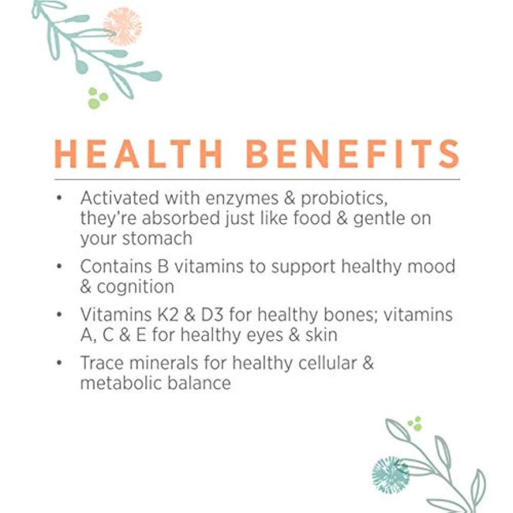 *** Características *** Apoya tu base nutricional vital con un espectro pleto de nutrientes para alimentos pletos. Ofrece una forma altamente biodisponible de vitaminas, minerales y cofactores hechos con verduras y frutas orgánicas. Solo dos tabletas diarias específicas el 200% de sus vitaminas esenciales y el 100% de sus oligominerales Activado con enzimas y probióticos para una mayor biodisponibilidad; se puede tomar con o sin alimentos y es suave con los estómagos más sensibles. Fabricado con ingredientes orgánicos certificados; sin OMG, vegetariano, sin gluten, sin lácteos. Bienestar simplificado con nuestro multivitamínico pleto de 2 días: Nuestras vitaminas se elaboran con verduras y frutas orgánicas saludables, luego se activan con enzimas y probióticos para mejorar la biodisponibilidad. Al igual que la ida, son perfectamente patibles con tu cuerpo y suaves con tu barriga. Además, tienen una sinergia de cofactores vitales y de alimentos enteros. Con todos los elementos esenciales para construir su base de salud, nuestro Multi VitaMin 2 al día hace que el bienestar sea sencillo.