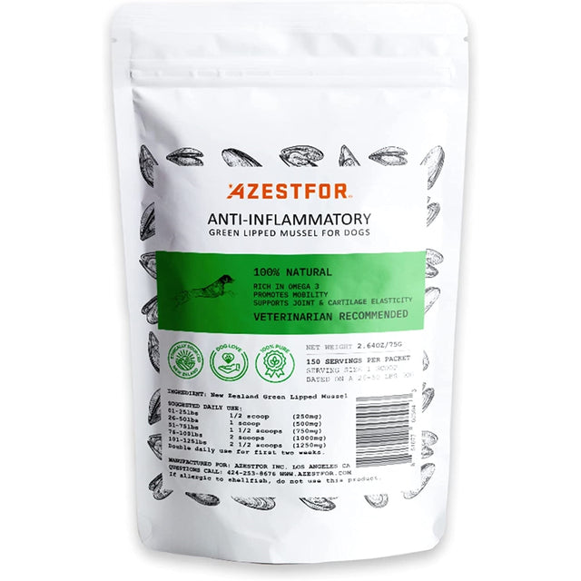 mejillón de labios verdes de Nueva Zela r ndado por veterinar seguro y saludable All Natural - Rico en Omega 3 - Promueve la movilidad - Reduce la inflamación muscular y los síntomas de la osteoartritis Éticamente procedente de las aguas prístinas de Nueva Zelanda. Cuchara de medición incluida. Ingredientes limitados: sin aditi sin conservan sin coloran sin sa sin rell sin gluten. Adecuado para perros de todas las eda hipoalergén dietas crudas.