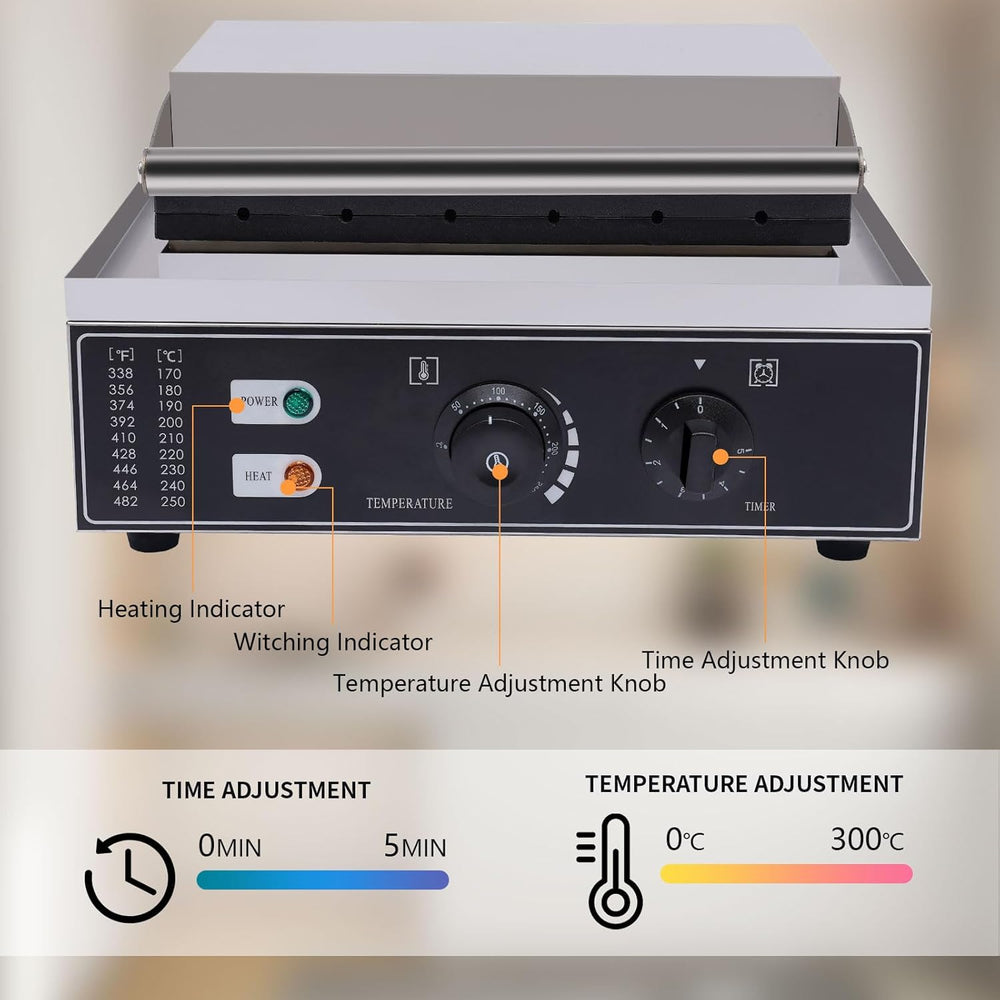 Máquina de Waffles 6 PCS, 1500W, Control Temp 50-300℃, 110V