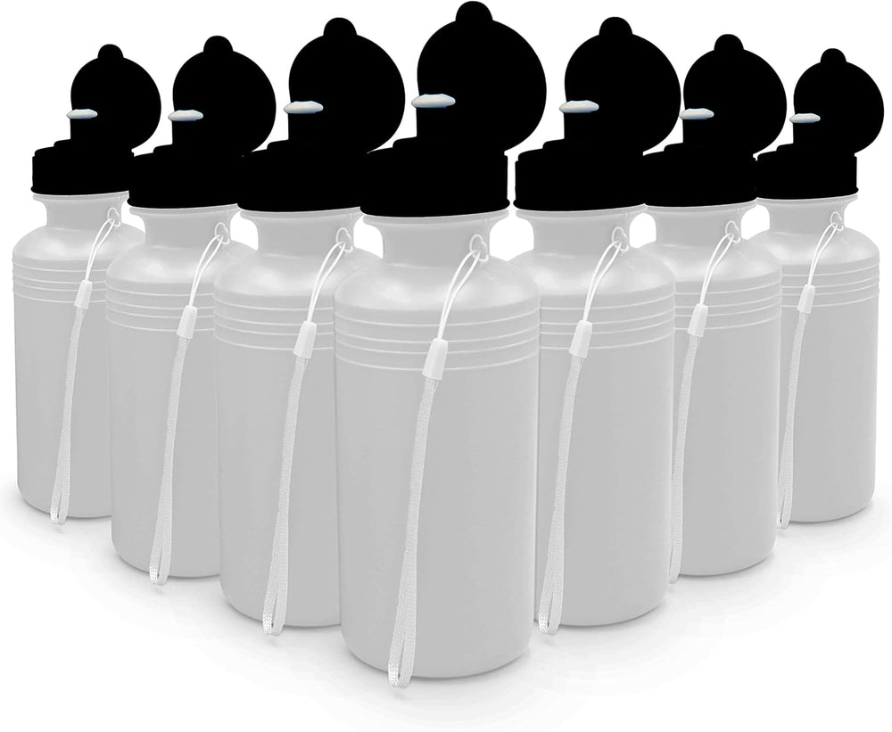4E's Novelty 12 botellas de agua deportivas a granel (paquete de 12) botellas de agua de plástico reutilizables de 18 onzas, sin BPA, botellas de agua para niños escolares