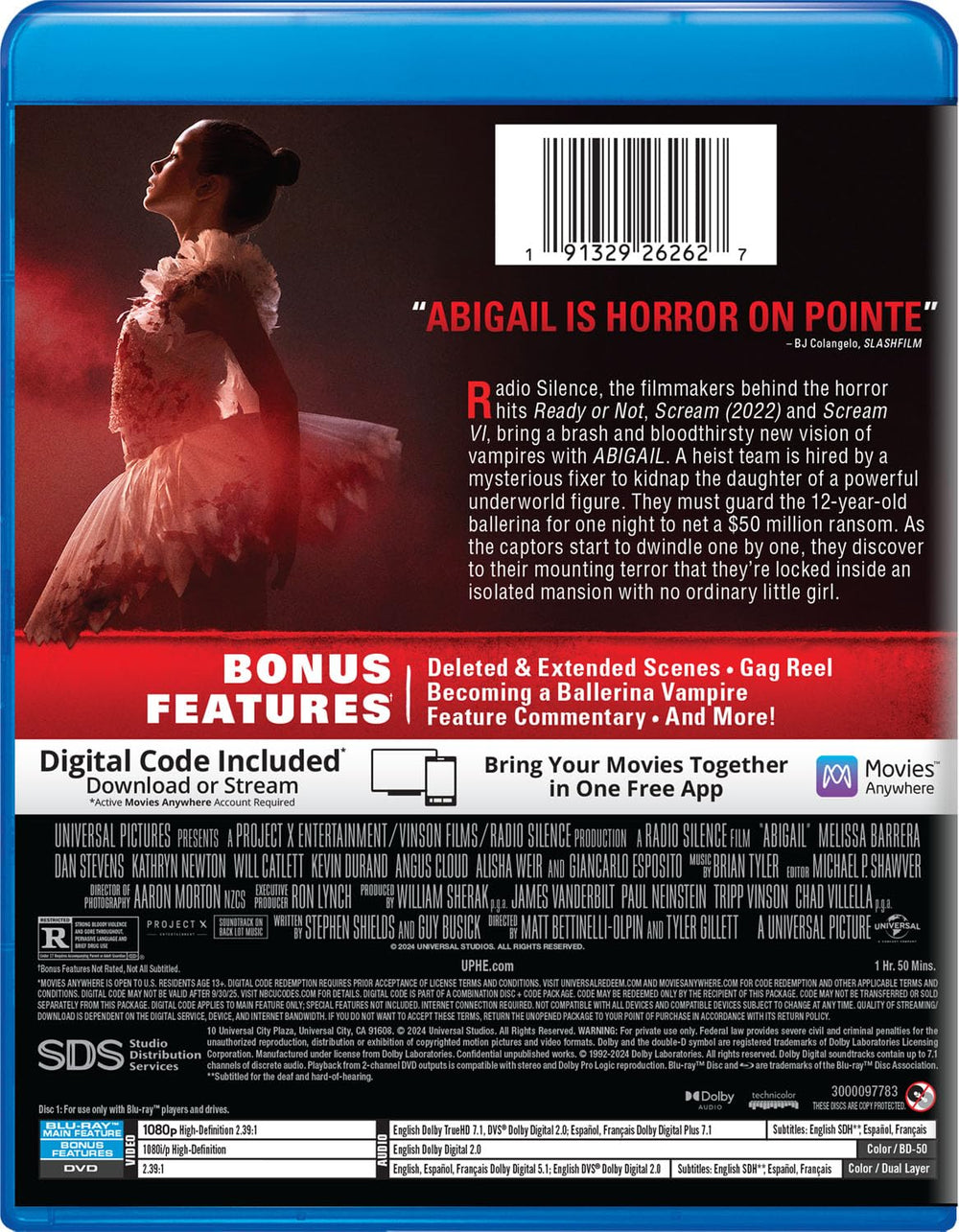 Abigail (Blu-ray + DVD + Digital) está agotado y se enviará tan pronto como vuelva a estar disponible.