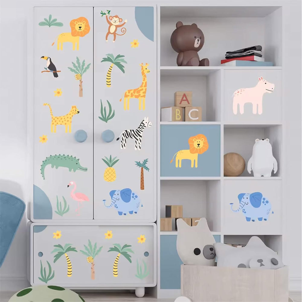 Adhesivos Pared Animales Safari, Decoración Infantil 4 Hojas