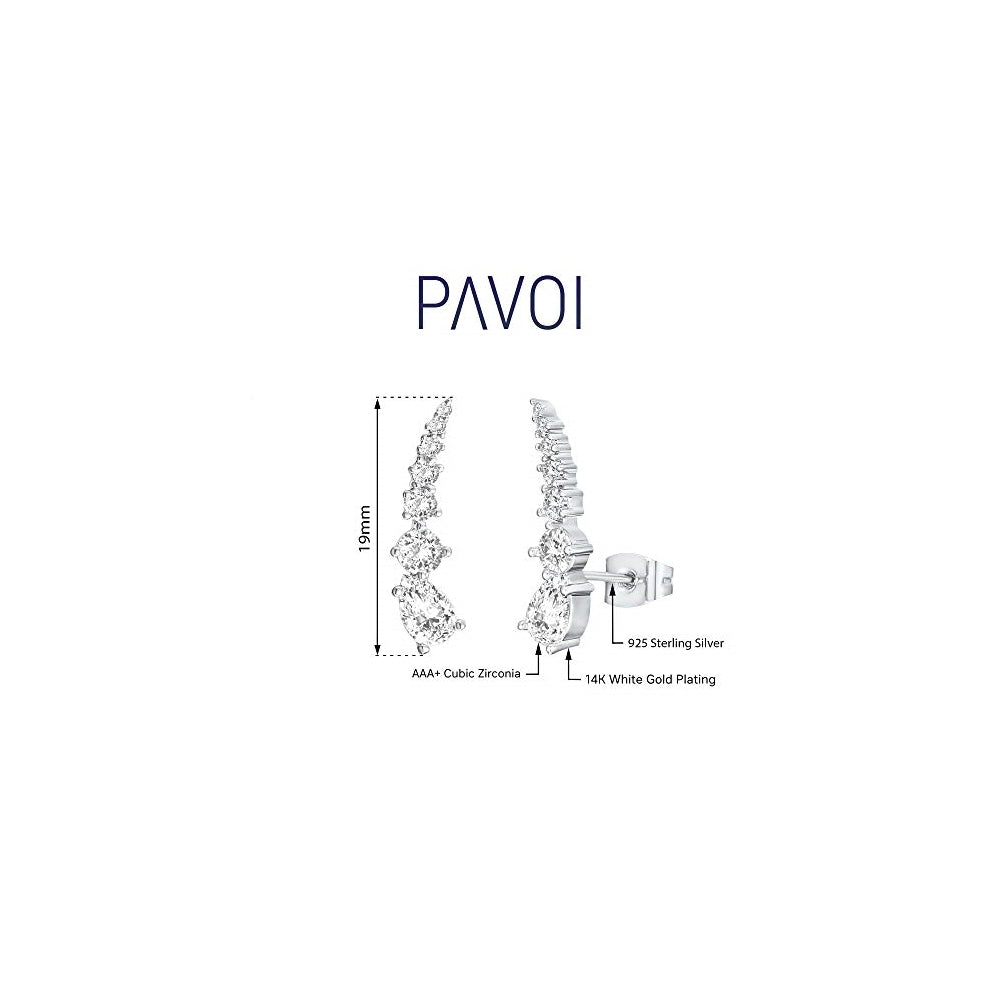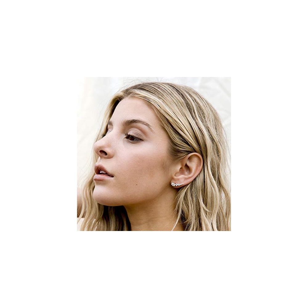 ? Diseño de flecha de moda ? Estos aretes trepadores de oreja bellamente diseñados son el regalo perfecto. Con gotas de lágrima y diamantes de imitación redondos graduados a lo largo de los aretes de flecha. ? Calidad premium? Fabricado con circonita cúbica premium, poste de plata de ley 925 y chapado en oro de 14 quilates con brillo duradero y acabado hipoalergénico. ? Hecho con amor ? Celebra a la mujer especial en tu vida. Este producto único y de moda está muy bien empaquetado y listo para regalar. Nuestras joyas son una sorpresa sentimental y un gran regalo para cumpleaños, aniversarios, día de la madre o celebración de boda.