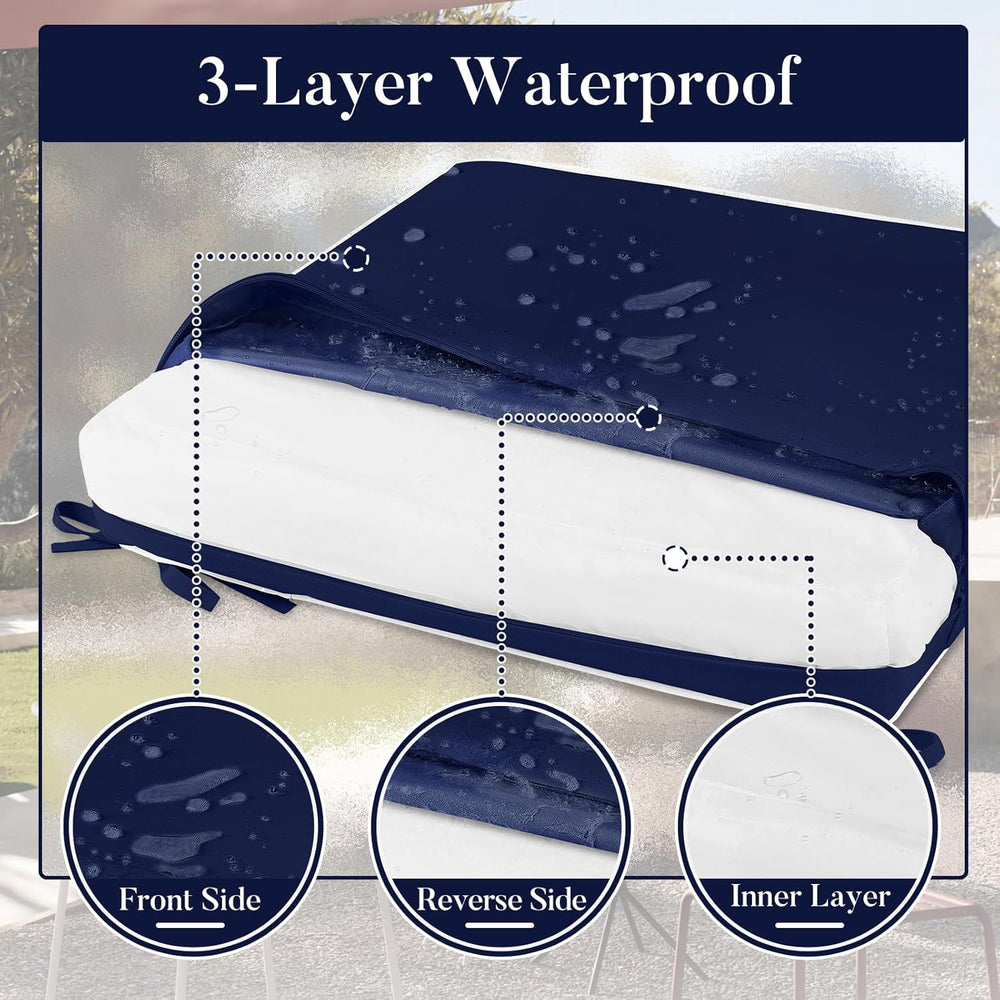Sobre este artí Cómodo y apoyado: diseñados con un lujoso grosor de 3 pulga estos cojines de asiento para muebles de exterior proporcionan la cantidad perfecta de didad y apoyo para tus sillas de patio. Los cojines para muebles de patio con esponja de alta densidad no son fáciles de aplanar para un uso a largo plazo. Cojines impermeables para patio: para una mejor impermeabilizac hemos añadido una superposición de TPU en la parte posterior de la tela Oxford impermeable original para evitar que las gotas de agua se filtren a través de las costuras de la tela. Además de e la esponja también tiene una carcasa impermeable que funciona bien agente impermeabilizante. Estables y flexibles: las correas antideslizantes garantizan que los cojines de muebles de exterior se mantengan en su lugar de forma seg incluso durante condiciones de viento. El práctico asa de transporte hace que los cojines de exterior sean fácilmente portáti lo que te permite mover y reorganizar tus muebles de exterior con facilidad. Fácil cuidado: la funda extraíble de los cojines de patio para muebles de exterior se puede lavar fácilme asegurando una superficie de asiento limpia y fresca en todo momento. Consejos: las fundas de cojín vienen plegadas en una c son fáciles de mon y luego obtendrás hermosos cojines para sillas de patio. Ampliamente utilizado: nuestros cojines de patio al aire libre están disponibles en dos estilos: 19 x 19 x 3 pulgadas con esquina redondeada y esquina cuadrada para adaptarse a tus necesidades específicas. Perfectos para sillas de patio y otros muebles de exter estos cojines de exterior para patio proporcionan una didad y estilo óptimos para ti y tu familia. Invierte en nuestros cojines de asiento para exteriores hoy y transforma tu zona de asientos al aire libre en un espacio lujoso y acogedor. Disfruta de la máxima didad y estilo para tus reuniones al aire libre y crea recuerdos preciados con familiares y amigos.