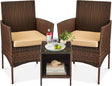 Best Choice Products Juego de 3 piezas de mimbre para exteriores, muebles de patio que ahorran espacio para patio, jardín con 2 sillas, 2 cojines, mesa de almacenamiento lateral, color marrón/bronceado está agotado y se enviará tan pronto como vuelva a estar disponible.
