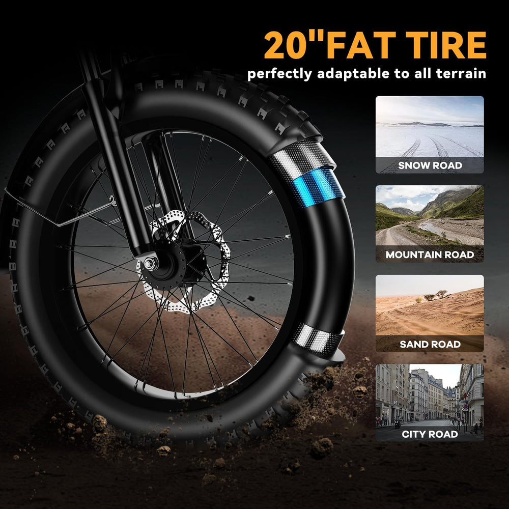 Bicicleta eléctrica 1000W, 48V 20AH, 30+MPH, Fat Tire 20