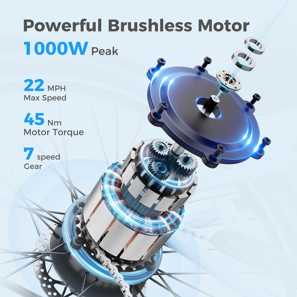 Bicicleta eléctrica Jasion CB1, 1000W, 450Wh, 26'', 7 velocidades