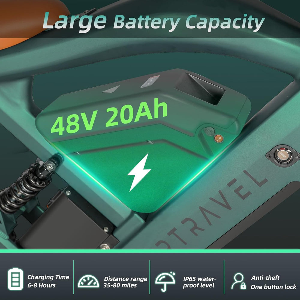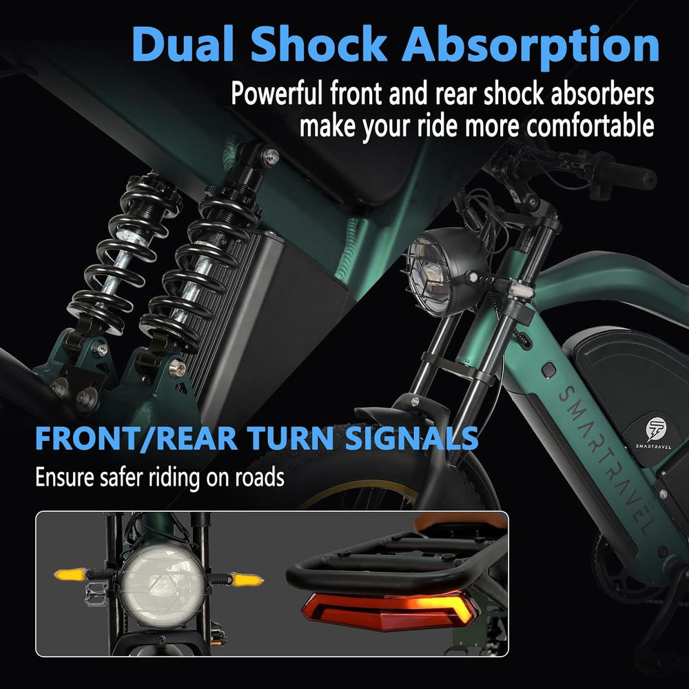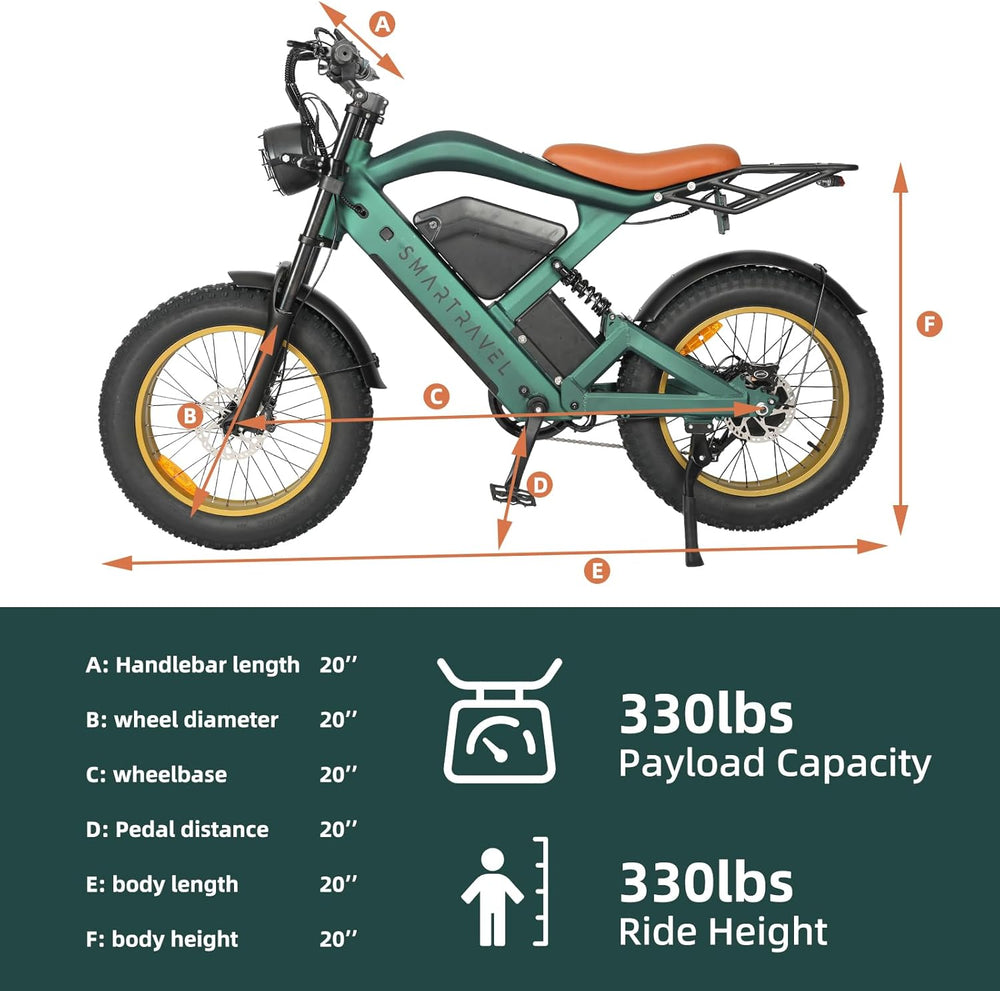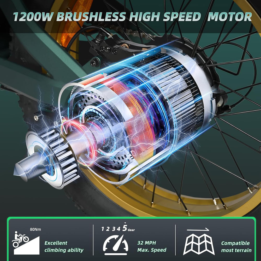 Bicicleta Eléctrica para Adultos, 1200W, 60 millas, 20 Fat Tire