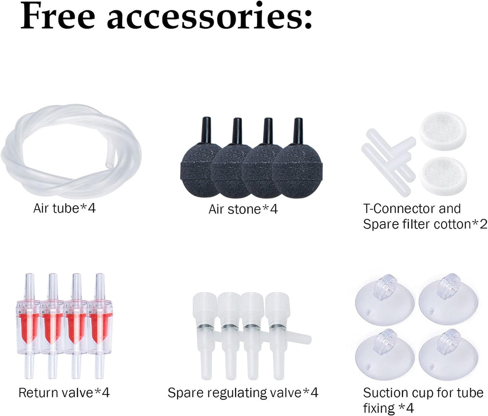 Bomba de aire FEDOUR 4W/5W/8W, ultra silenciosa, 4 salidas