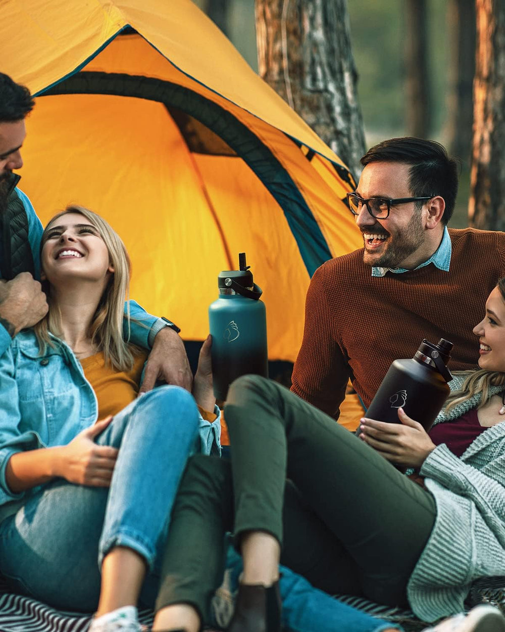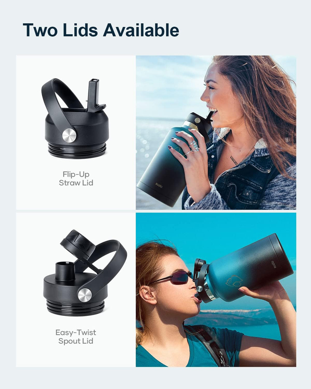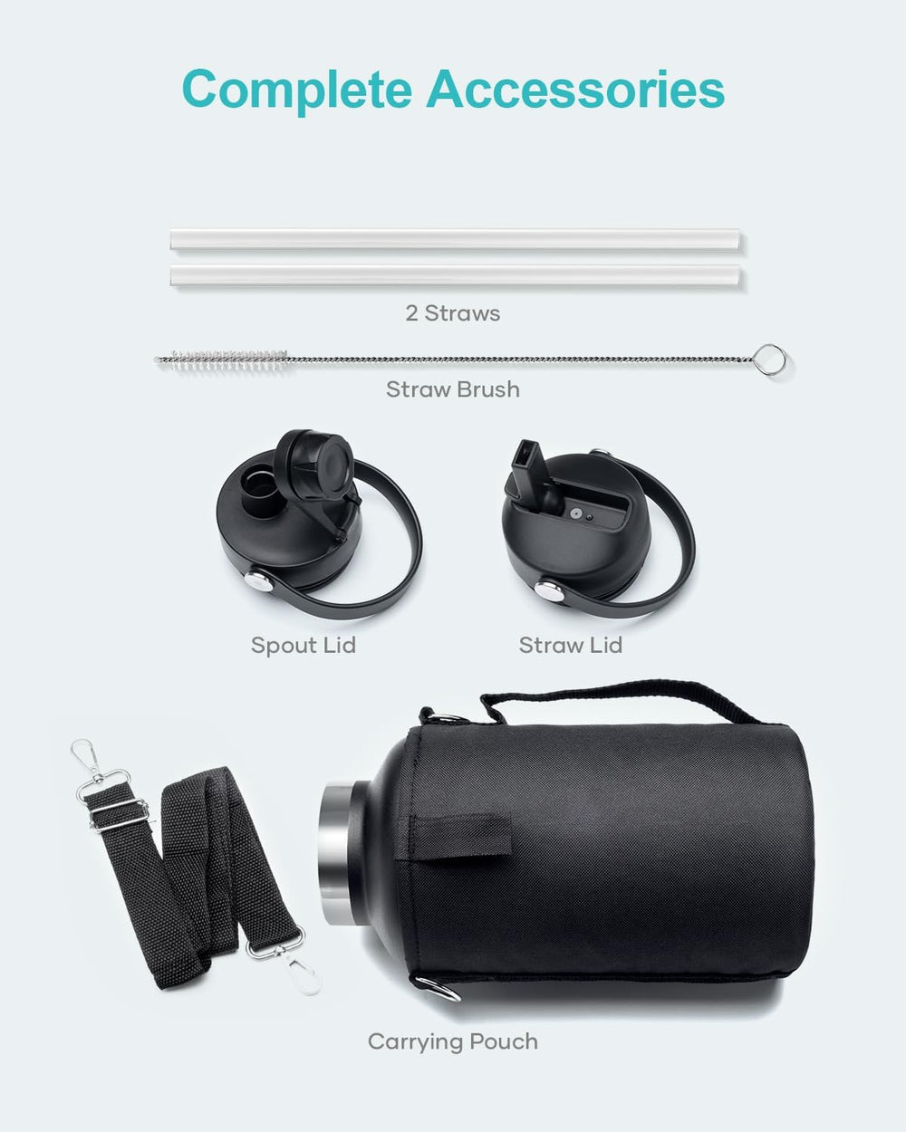 Botella de Agua de 64oz, BUZIO, Aislada, Con Paja y Funda