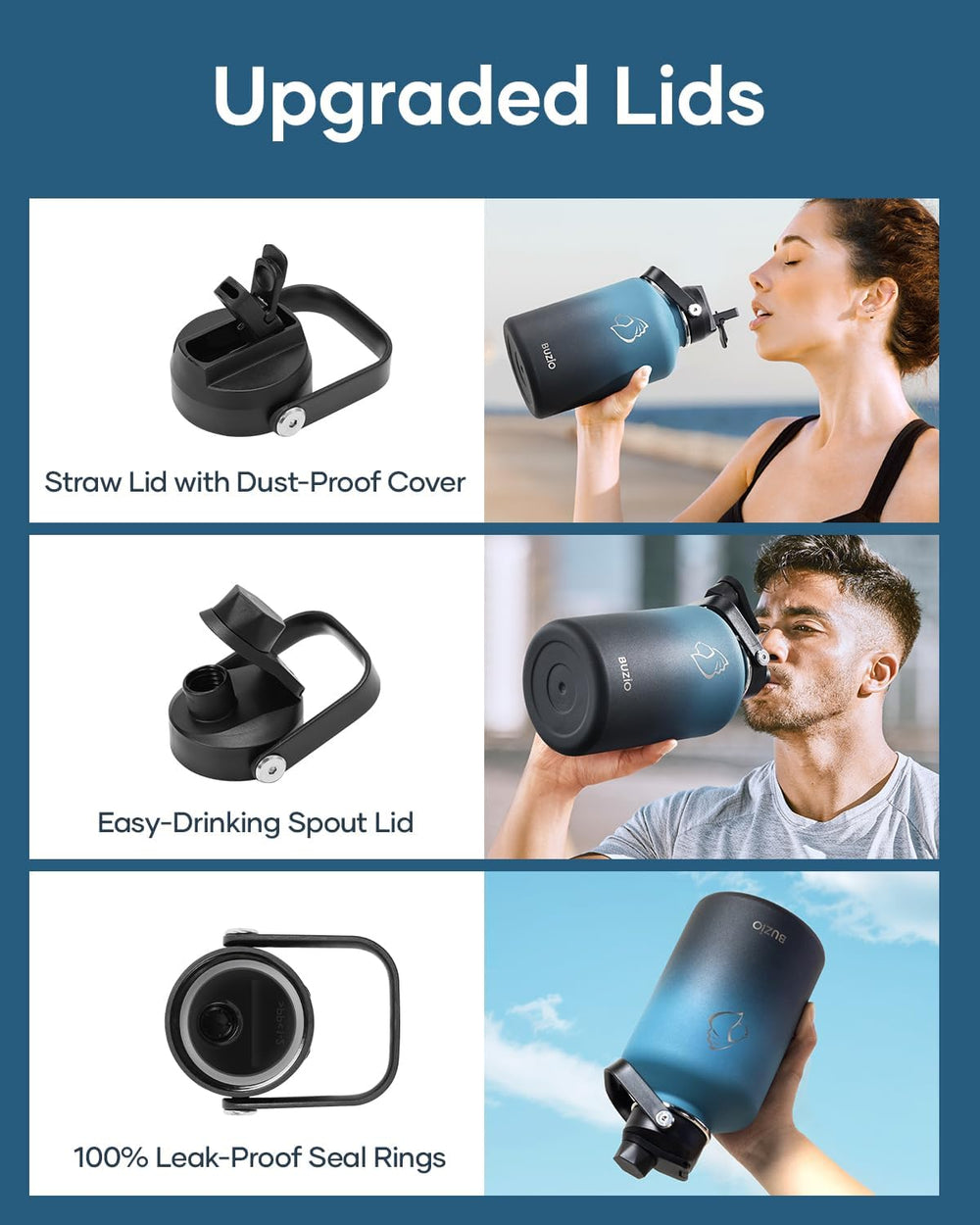 Botella de Agua de Acero Inoxidable BUZIO 64 oz, Aislada, Modelo Half Gallon