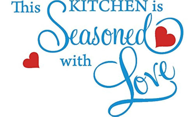 Calcomanía de pared con la cita This Kitchen is SEASONED WITH LOVE