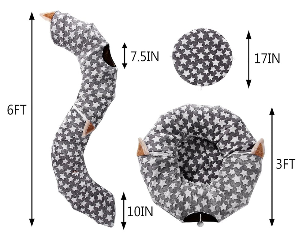 *** Características *** * Túnel de gato: juguete y cama: nuestro gato puede tomar una siesta, correr, esconderse, perseguir, cazar y dormir en nuestro simple tubo de túnel plegable Kitty. Mejor material de felpa, longitud del túnel 98 ", diámetro del túnel 9.8". *? Muchas formas de uso: el túnel se puede convertir en redondo o en forma de S. La cama y el túnel están hechos de un revestimiento suave que se arruga y mantendrá a su gato entretenido. * Diseño premium: suave y duradero, con alfombra en forma de luna llena en el centro, mucho espacio y bola de pelusa para que jueguen gatos o perros pequeños. Se adapta a menos de 10 KG de gato o perro pequeño para jugar juntos. * Almacenamiento: el túnel se colapsa fácilmente, lo que facilita su almacenamiento. Compre uno y obtenga dos: túnel y cama. Excelentes materiales, diseño perfecto, excelente producción. Entonces a nuestro gato le gustará mucho. No hay razón para que renuncies. Haz clic para comprarlo y deja que tu gato se enamore de él. Creemos que este producto le permitirá volver a comprender el túnel del gato. Por cierto: longitud del túnel 98 ", diámetro del túnel 9.8".