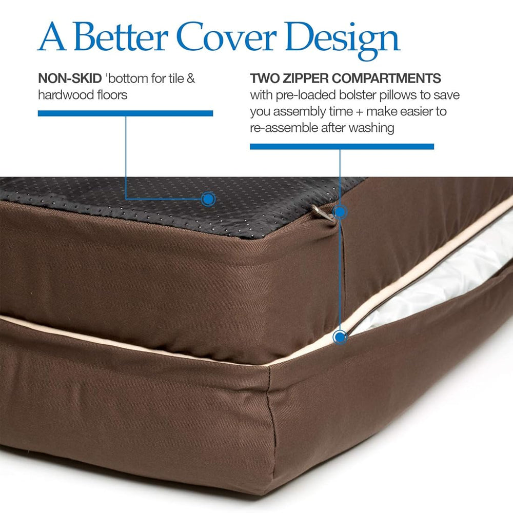 Talla L Material Memory foam, Polyester Fiber, Polyester & Cotton Twill Cover Marca PetFusion Color Chocolate Brown Dimensiones del artículo LxWxH 36 x 28 x 9 pulgadas Componentes de alta calidad --- (I), base de espuma de memoria 4 inch sólido (II) reciclado polyfill refuerzos "verde, (III) de sarga de poliéster (65%) y algodón (35%), resistente (IV) fuertes cremalleras y extraer. Diseño inteligente --- (I) base & refuerzos proporcionan una comodidad y un apoyo, (II) resistente al agua y resistente a desgarros, (III) parte inferior antideslizante, (IV) combina a la perfección con su decoración Fácil de limpiar --- (I) funda extraíble es lavable a máquina, el foco (II) fácil de limpiar y quitar pelo Ideal para tamaño mediano/grande o varias pequeñas perros --- 36 x 28 x 9 inches (LWH) puede mantener 100 + kg Peso Embalaje eficiente y fácil montaje. "mitras (sofá brazos) precargada en funda de tela, simplemente inserta espuma de memoria base y cierre cerrada.