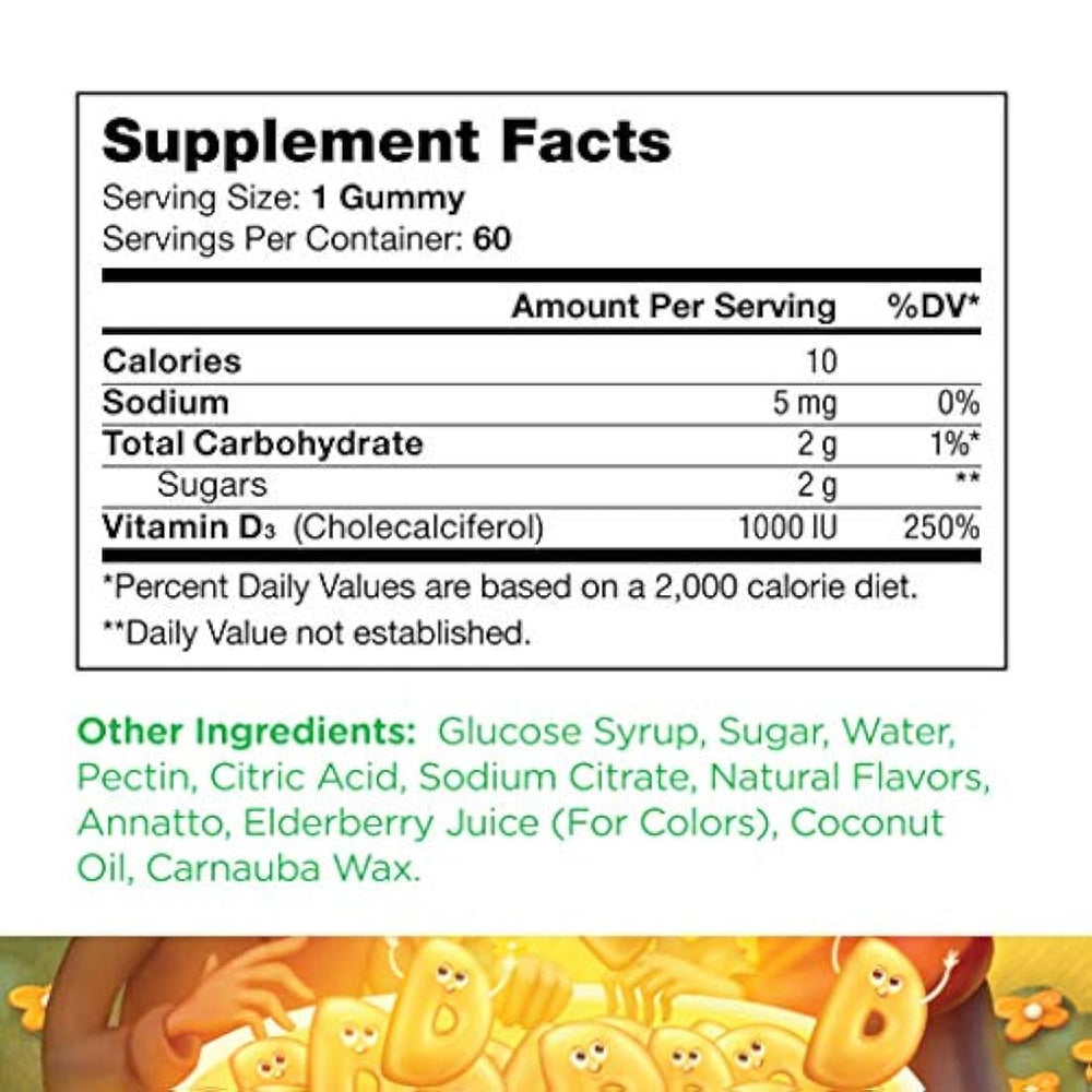 Capítulo uno Vitamina D3 gomas, gran sabor masticable vitamina D3 para niños, vitamina D3 1000IU, certificado Kosher (60 gomas con sabor)