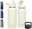 CIVAGO Botella de agua aislada de 32 onzas con pajilla, taza de agua deportiva de acero inoxidable con 3 tapas (pajilla, boquilla portátil y tapa de asa), taza térmica de viaje de doble pared, color