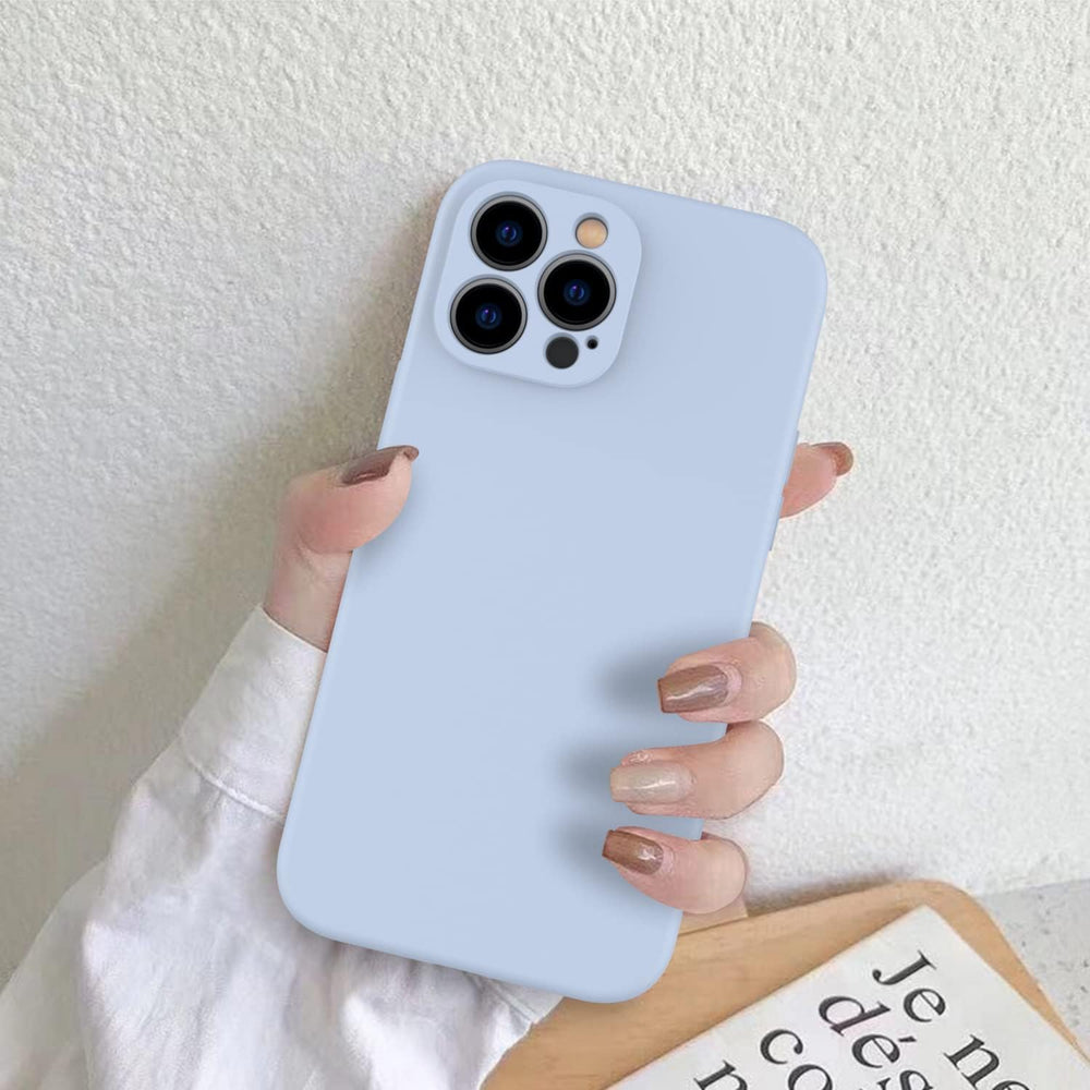 DEENAKIN Funda para iPhone 13 Pro Max con protector de pantalla, cubierta de goma de gel de silicona líquida suave y duradera para iPhone 13 Pro Max de 6.7 pulgadas, color azul claro