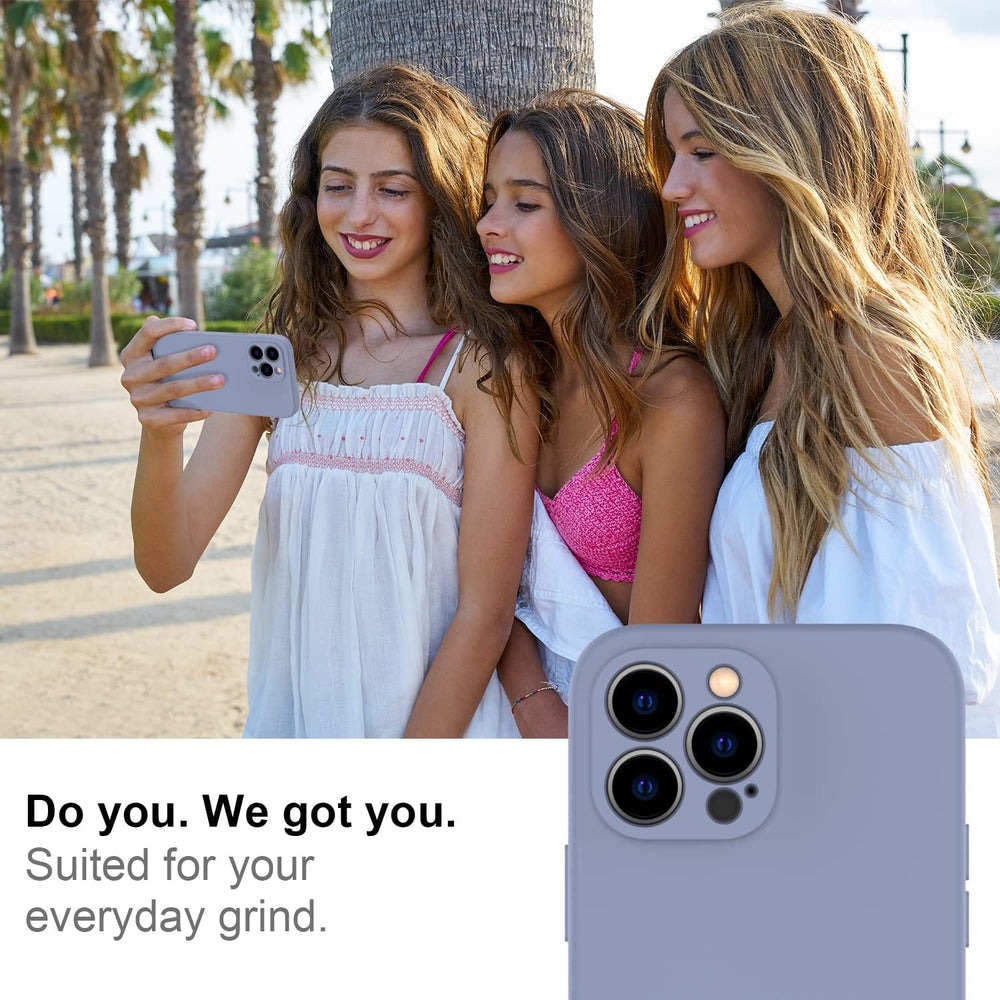 DEENAKIN Funda para iPhone 13 Pro Max con protector de pantalla, cubierta de goma de gel de silicona líquida suave y duradera para iPhone 13 Pro Max de 6.7 pulgadas, color gris ceniza