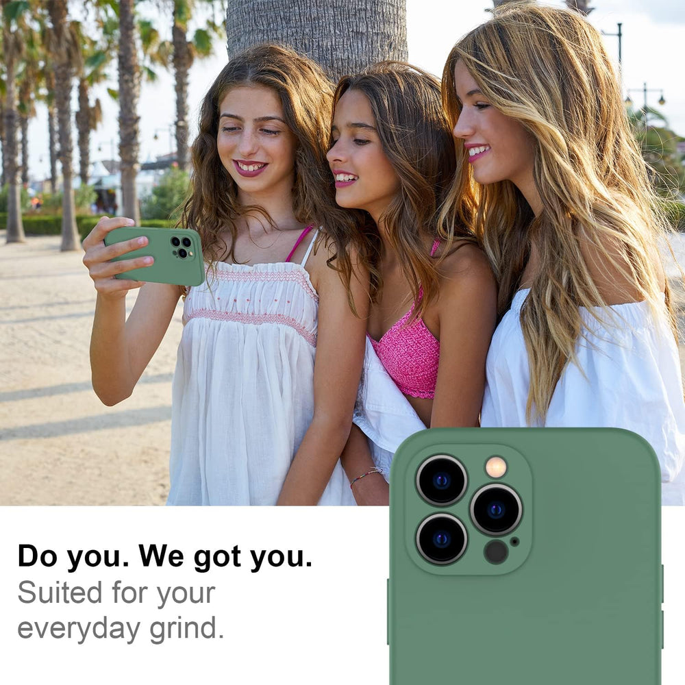 DEENAKIN Funda para iPhone 13 Pro Max con protector de pantalla, cubierta de goma de gel de silicona líquida suave y duradera para iPhone 13 Pro Max de 6.7 pulgadas, color verde oscuro