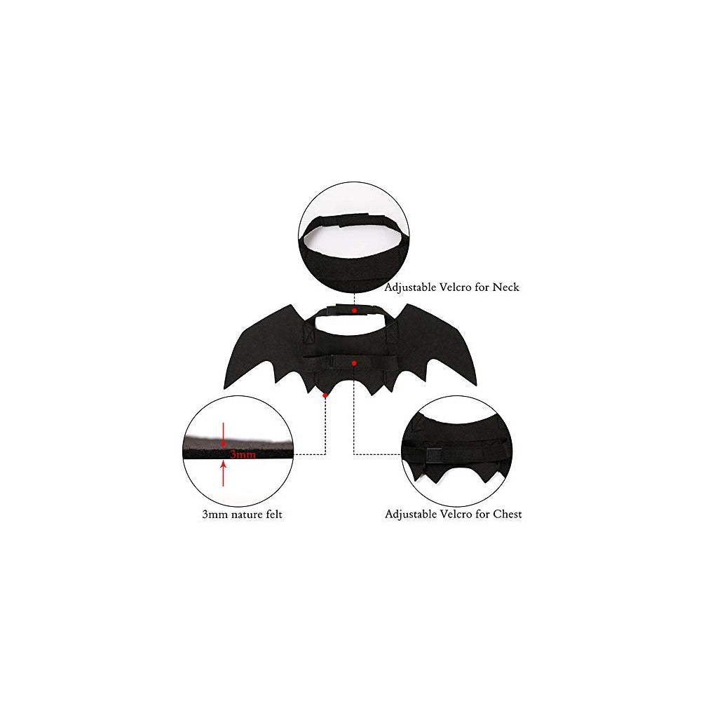 Talla única: pecho 14.2-16.5 cuello 9.4-14.2 tamaño ajustable para la mayoría de los gatos ?Hecho de tela de fieltro ne interpretación leta de los murciélagos misteriosos y geniales ?Peso: 1.1 on ligero y no tiene sensación de restricción para el gato o cachorro Gran regalo de Halloween para tu g no solo para ti mi tu gato también necesita Halloween. ? Divertido aspecto de alas de murciél muy lindo y ganará mucha admirac aumentando el ambiente festivo